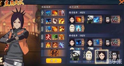 开打后,手鞠奥义起手6追打,普攻起手5追打,很容易打开局面。而且手鞠是1手位,奥义不易被打断。然后3手位的自来也主要提供AOE伤害。