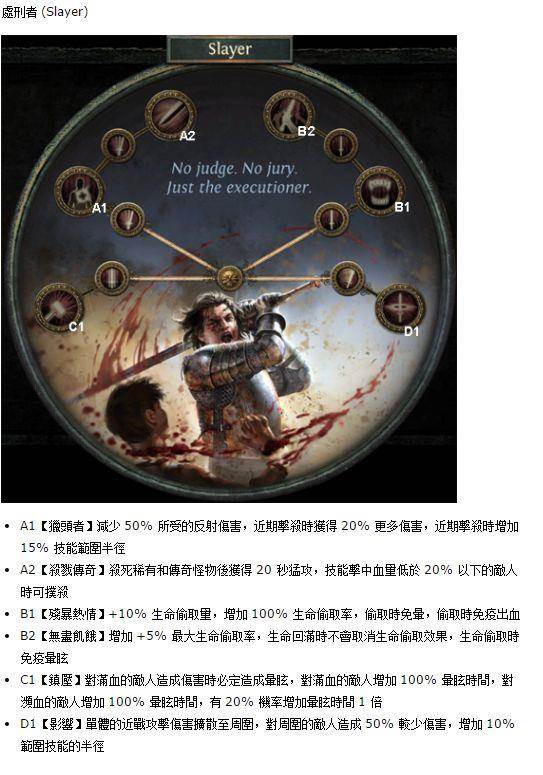 A1 减少物理反伤 并且击杀时获得20%more伤害和15%的范围半径 对与破空斩的加成 从字面上就看的很清楚了