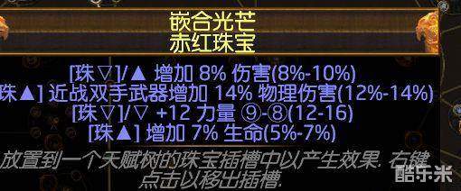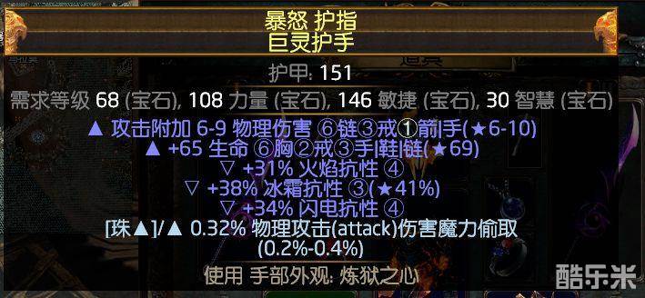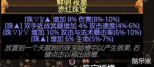 珠宝方面 我的选择是以生命和物理伤害加成为主 抗性不足的也可以补下抗性 因为只有三个珠宝孔 所以也不用太过于纠结珠宝方面的问题
