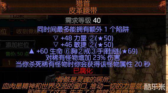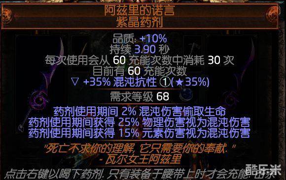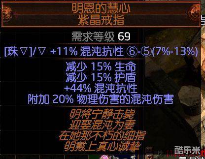 恶作剧 这件衣服以我们的BD构建来看真的是绝配 增加了混沌伤害=增加了毒伤 增加了偷取速度可以让生存能力再次拔高 并且还有100血量和不错的护甲闪避值 难道还有更好的选择吗?