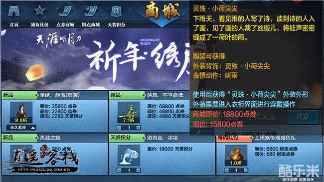 在秋季版本更新完成之后,我们就可以在商城中见到本期攻略的“主角”——“灵殊·小荷尖尖”,原价18800点券/绑点,近期选购可享有8.4折优惠,仅需15800点券/绑点即可将其收入囊中,这个价位在同类配饰中不算低廉,但绝对物超所值!悄悄提醒诸位少侠,“一代宗师”新赛季即将到来,届时重返起跑线,可以再度冲刺阶位,斩获相应奖励,其中有大量绑定点券哦!用来购买这款配饰绰绰有余。