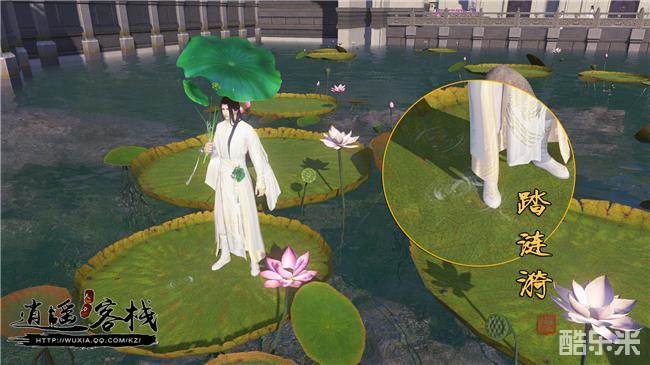 ↑「争似归来双足、踏涟漪」,使用“听雨”动作,步履间将有朵朵涟漪盛放,宛如行走在碧水之上。