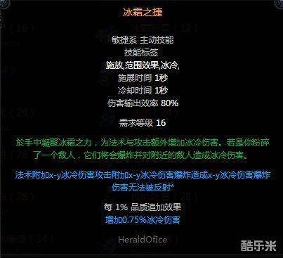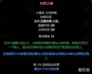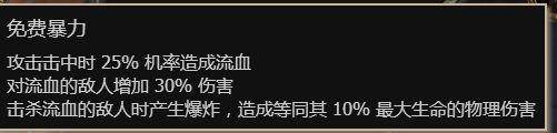 输出机制【高额武器物理伤害加成以及对流血敌人的额外二次增伤,配合免费暴力以及主技能以及光环灰烬之捷寒冰之捷来达成高范围爆炸 清小怪速度一流】