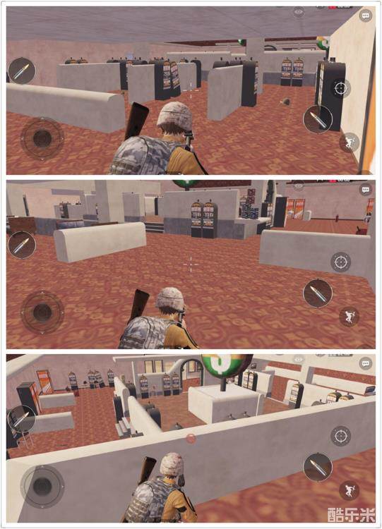 赌场内部资源量一般,单人搜刮仅够基础装备,但赌场内部的空间与墙体摆设形成了经典的“室内巷战”。一楼虽然墙体多且有规律,但少有能将玩家整个身躯都保护起来的高墙,多数矮墙也仅能提供暂时的掩护作用,面对二楼的视野压制也显得束手无策,只能像无头苍蝇一般乱飞乱撞寻求安全角度。
