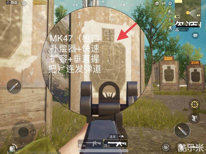 MK47二连发开火模式下的弹孔较为紧凑,虽然没有左右飘动的明显痕迹,但连续开火的时间间歇较久,不适合近距离作战。后坐力方面主要体现在垂直弹道上,不过好在还有配件可以改善一下它的不足。