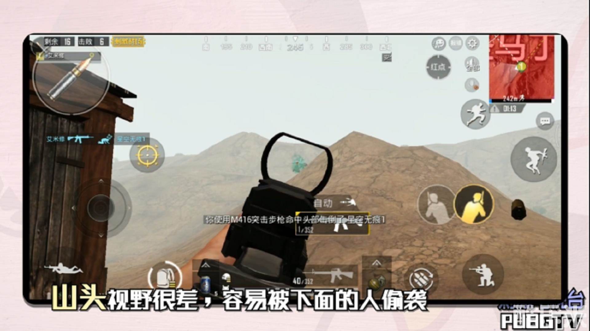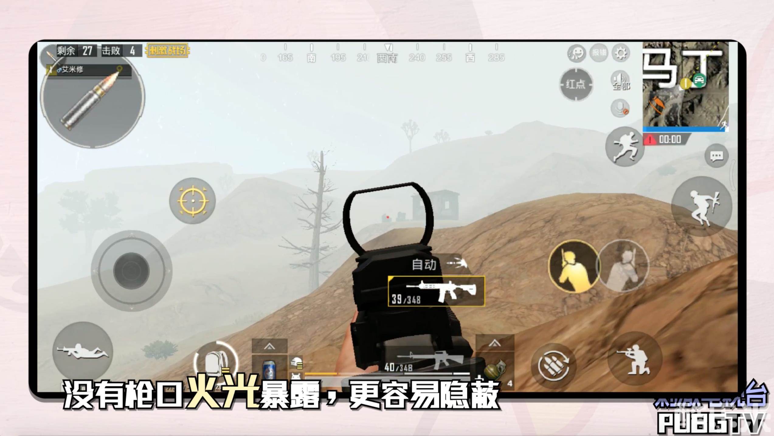 然而沙漠地图中,不建议在山头乱晃。没有任何掩体的你不仅什么都看不到,还只能成为敌人的囊中快递盒。