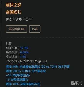 武器 金色匕首 数值 法术伤害-法术暴击几率-暴击加成-法术点伤-攻击速度等都是好词缀