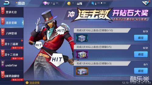 活动内容:武者们在活动期间内,参加连击宝箱活动,即可获得超级福利。分别设有初级连击宝箱(3次10连击)、连击中级宝箱(2次30连击)以及高级连击宝箱(1次40连击),宝箱内进化礼包、神石、科技能源、钻石、金币数量居多,任你拿。