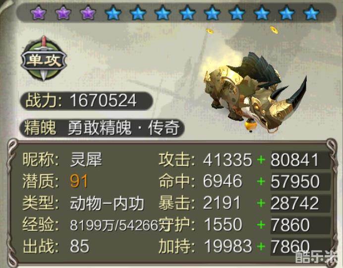 伙伴攻击41335;精魄加成8084;咆哮提升150%;爪击技能360%,也就是说伙伴在进行爪击时附加的攻击力将会达到1099584!伙伴一击百万攻,且在“海沸江翻”和“灵犀一击”加持下造成的伤害总量还会更加变态!这样你还会说伙伴的伤害不行吗?