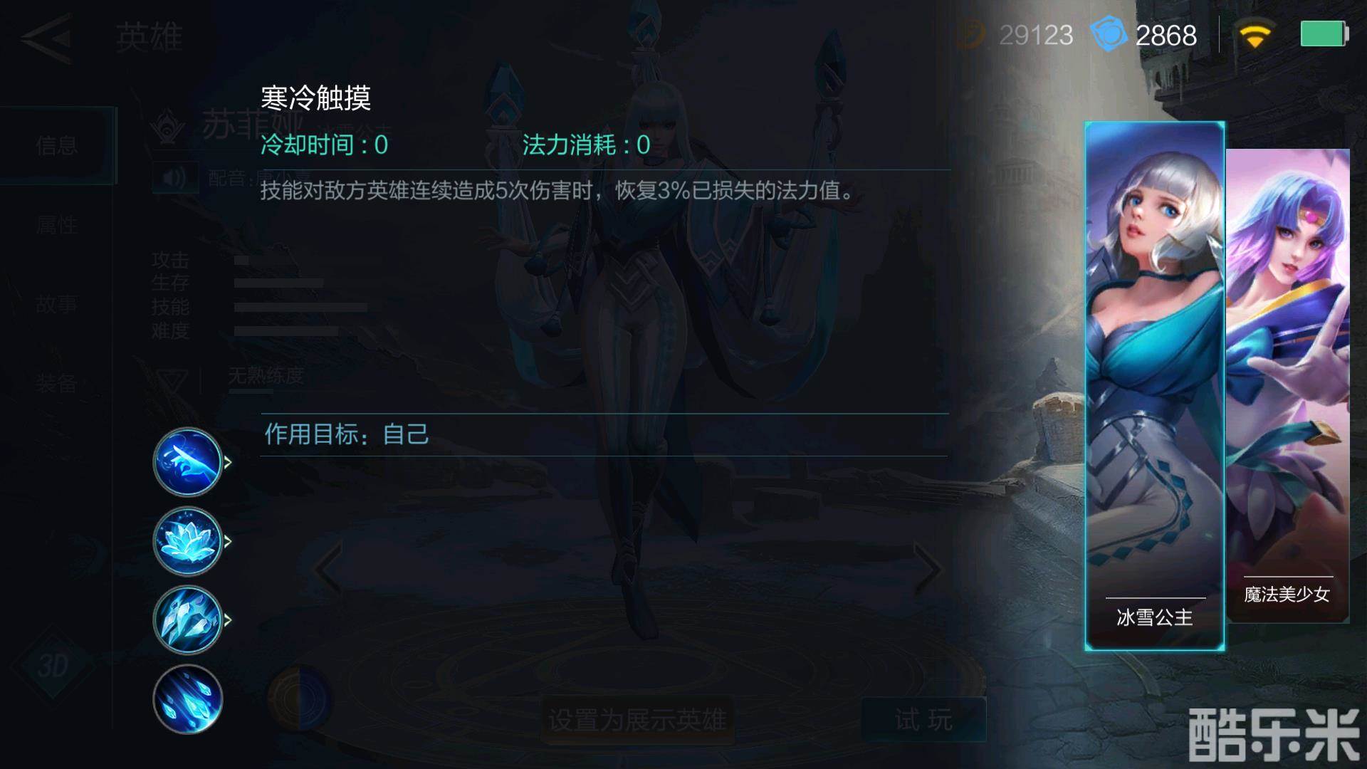 在激战狂潮中,冰雪公主苏菲娅也是一个美丽的尤物,她清丽冷峻的感觉似乎更胜她的实力,当然,她可不是花瓶,她也是一个非常具有实力的法师,那么接下来,皮皮骚便为大家带来冰雪公主苏菲娅的技能简析吧,有兴趣的小伙伴们不要错过哦。
