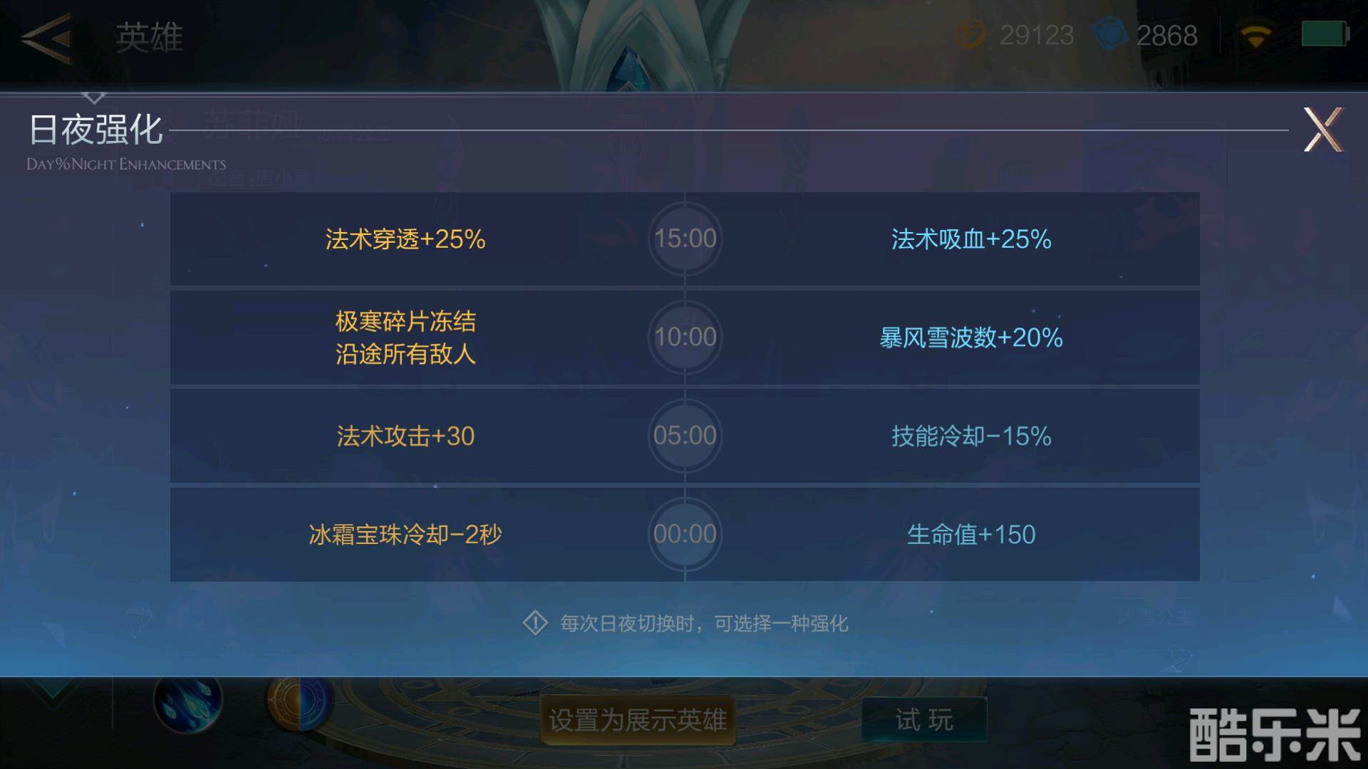 第一阶段:冰霜宝珠冷却-2秒/生命值+150。