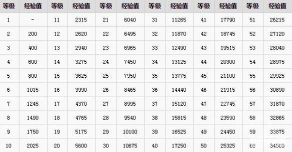 各级所需经验值不累计,比如从一级升到三级,总计需要200+400=600,因此升满级总共需要79万多的经验值。
