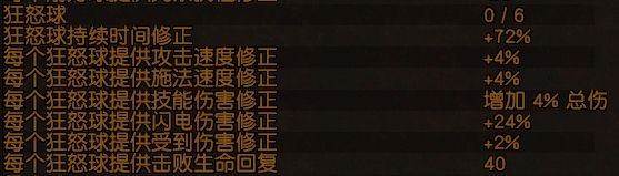 这个BD的核心,每个绿球增加12%的闪电伤害(双持可叠加成24%),升华侠客点出绿球,7个绿球,鞋子和项链可以挖出+1绿球。算下还是挺多加成的。绿球也提供很高的收益
