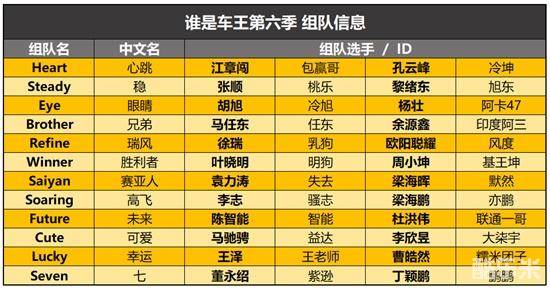 其中,“Heart”队伍由S5江章闯、梁海鹏组合,变为S6江章闯、孔云峰组合,敢问“包赢哥”一句,是因为“亦鹏”在星光秀场直播,“冷坤”在虎牙同平台,所以你舍“鹏”取“坤”了吗?“Steady”队伍依旧是张顺和黎绪东的强强组合,张顺问鼎S5车王,黎绪东车王颜值担当,牛!