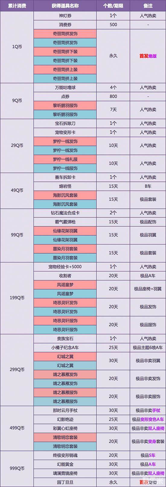 年底极品盛宴诚意满满,12月期间,QQ飞车商城消费送首发极品【奇丽简拼发饰/上装/下装】!活动期间累积消费达到不同的数额,即可分别获得不同的丰厚奖励,极品座椅【璃澜霓镜座椅】、极品S车【终极变形销魂】、极品A车【幻能黄金】,还有Q币代金券、极品羽翼、点券、人气宝箱等大礼倾情献上!