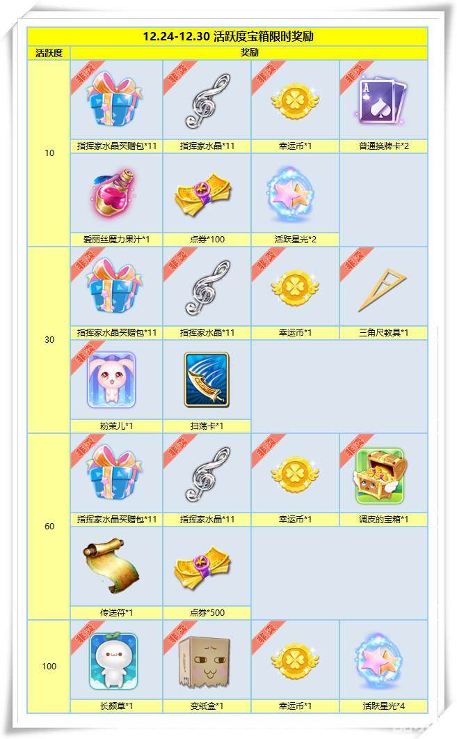 活动期间,每天活跃度到达10、30、60时,也能领到指挥家买赠包哟~