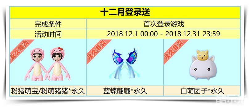 12.1-12.31,登录游戏就可领取永久非卖宝儿套装,更有精美的饰品相送,陪你度过不一样的12月!