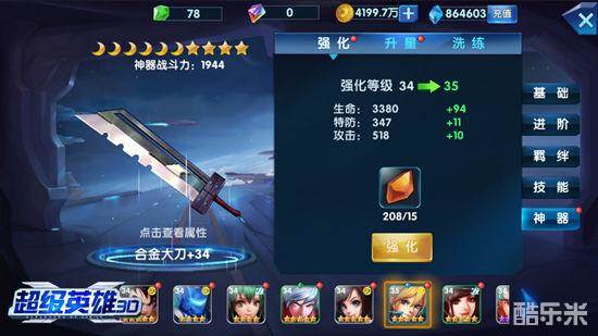 神器激活后,玩家就可以对神器进行强化、升星与洗炼的操作了。强化能够提升神器的强化等级,增加神器所能够提供的属性加成。