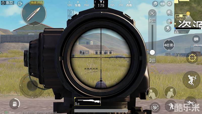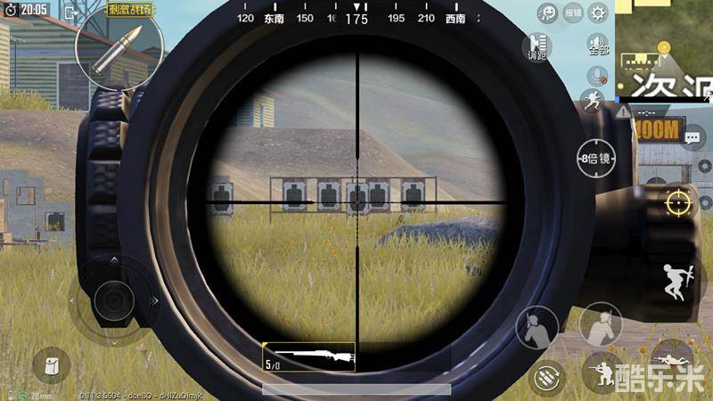 相信大家从图中就能看到,八倍镜的视野比起六倍镜宽阔了许多。这是因为六倍镜的镜面实在太小,而在倍数这么大镜面这么小的情况下,就导致玩家开镜很难找到目标,因为目标很可能被倍镜的黑边挡住了。八倍镜则不会出现这种情况,且打移动靶的时候,六倍镜需要极其频繁的移动准星,但镜面又小,导致玩家手感极差,八倍镜在这一点由于自身较大的镜面也是收获无数好评。