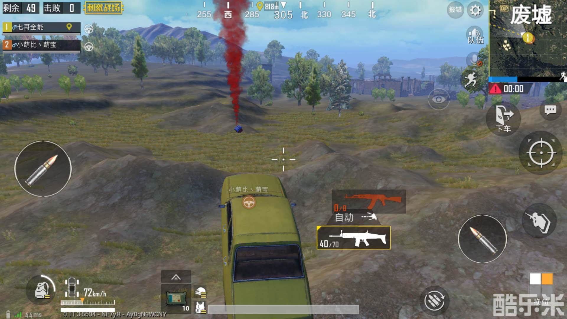 开车抢空投时,开车的人调节视角经常丢失空投视野,在头顶总会有很大一片盲区,坐车的队友头顶视野盲区很小。这个也是非常常见的问题,所以需要队友经常报点,以及估测空投距离,这样才能更快速到达空投地点。