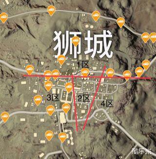 小编根据狮城地形将其划分为4块区域;其中,1区2区是狮城的主要战斗点,也是资源分布最密集的两个点;3区与4区则是分布在狮城的边角地带,虽然也有不少资源装备,但是资源点周边空地较多,马路过于宽阔不便转点与躲避。