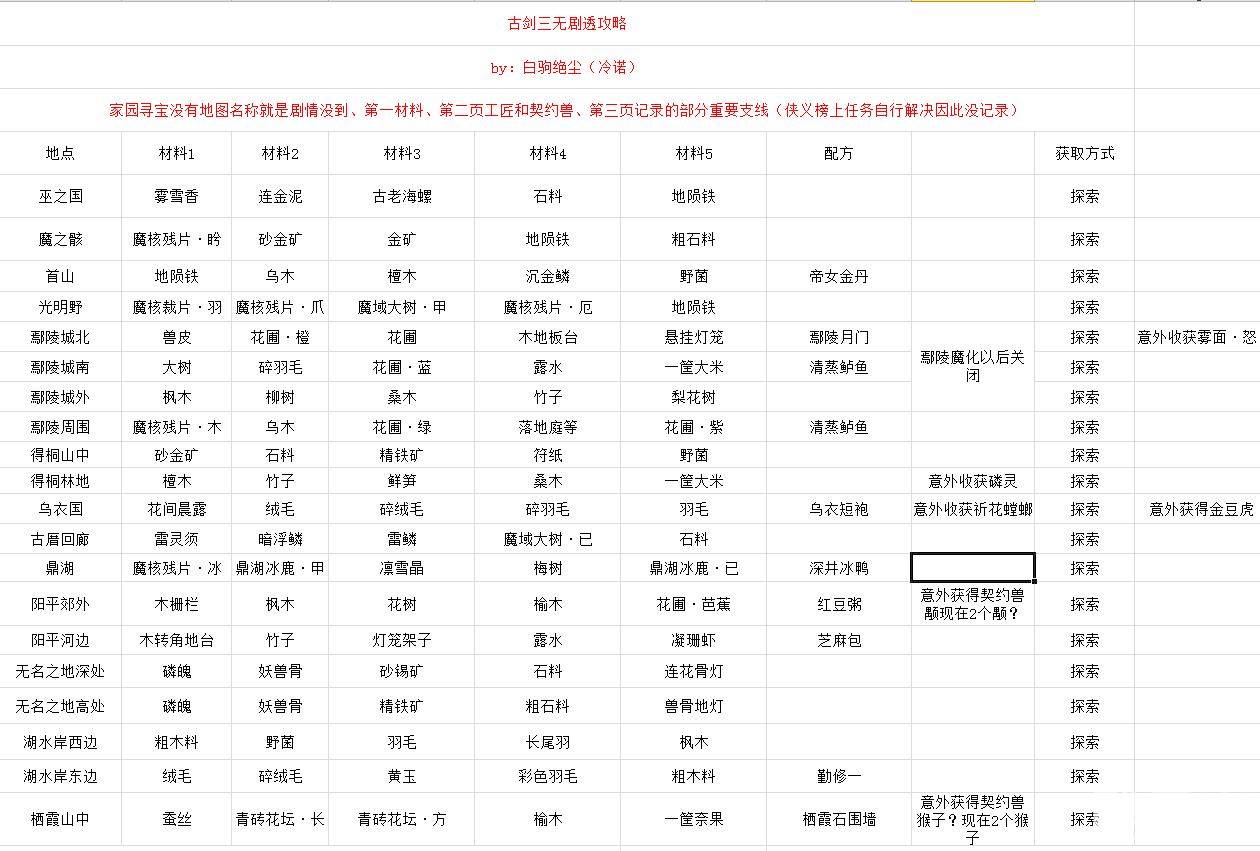 古剑奇谭三中家园需要很多材料,那么这些材料都在哪里可以获得呢?想必很多朋友都不是很清楚吧,所以呢小编给大家带来的就是古剑奇谭3家园探索全材料一览,需要的朋友还不快进来看看?(点击可查看大图)