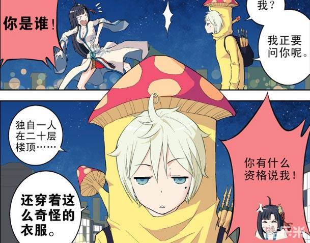 叶言的蘑菇装出现在《王牌御史》漫画的第一话——男女主初次相见于天台时,叶言就是穿着这身蘑菇装,并且自称是在进行名为「孤独的蘑菇」的行为艺术。这身奇怪的造型,当真把初到人界的女主黄晓烟吓了一跳。