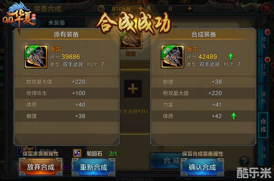 对于追求战斗力成长的玩家们而言,如何让自己获取的装备更加符合心意?别着急,全新版本的装备合成玩法将带给你不一样的游戏体验。新增的重新合成装备功能,十分强大。玩家只需要在元宝商城购买轮回石,即可对装备进行重新合成。在游戏中点击【重新合成】后,系统会根据该次合成材料重新进行一次装备随机合成,合成规则不变。在装备合成界面可预览装备颜色及概率,神兵利器唾手可得。诸多小改动也十分贴心,如全新的战功簿,受赠积分的提升等。而玩家们热爱的副本释天劫,关卡数也增加至72,全新挑战你准备好了吗?