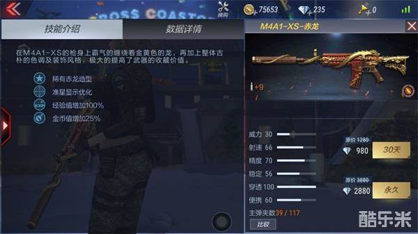 小结: M4A1-欢乐谷和同级别的M4相比并无太多的优势,除登陆永久免费外。