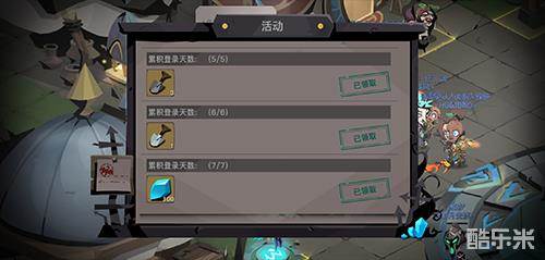 2.活动,以每日签到为例,签到第七天就能够获取到水晶。