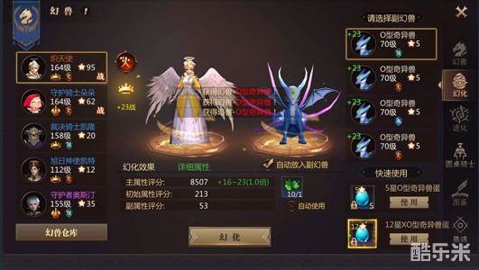 通过消耗O型奇异兽、同名幻兽对主幻兽进行幻化,提升主幻兽评分、星级。但副幻兽副属性或初始属性大于主幻兽的副属性或初始属性时,方可作为副幻兽进行幻化。
