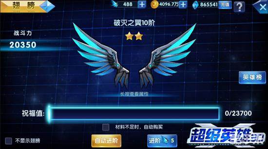 《超级英雄3D》的翅膀为玩家提供的战斗力相当惊人,一阶的翅膀就能够为玩家提供上千的血量和上百的攻击防御力,由于祝福值设定,玩家们也不用担心浪费大量的升阶材料。