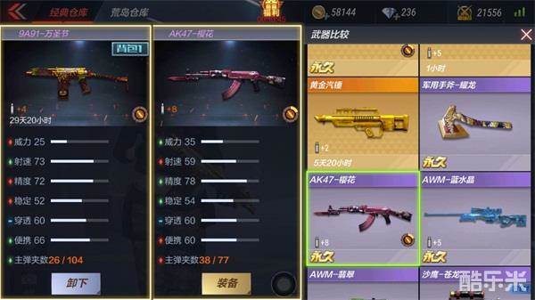 如图,9A91-万圣节和AK47-樱花相比,前者射速、便携和主弹夹数强于后者,威力、精度和稳定弱于后者,其他数据维持一致,即:前者压制性强,短时作战占优;后者正面刚枪强劲,远超前者。