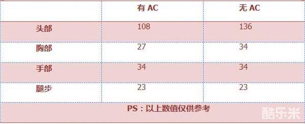 根据上述信息,我们可以看出:AN94-迷彩具备无视AC秒杀的特性,即只要命中目标头部就能将之淘汰(穿透例外)。其次,头部以下位置根据目标有无AC适时补枪即可(一般3~5枪)。