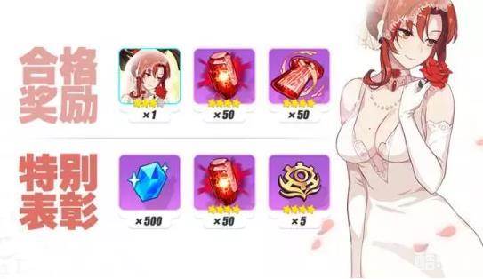 在考试中最终考试得分达到80分及以上,可获得圣痕「姬子·花嫁(中)」、稀有晶体核心×50、圣痕共鸣×50。
