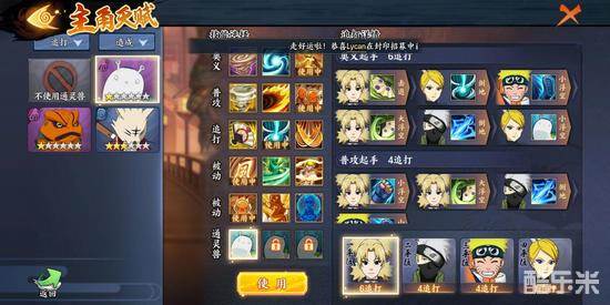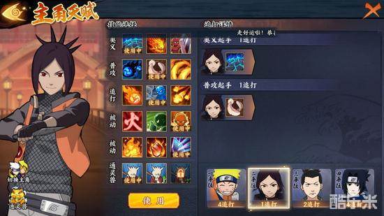 2、第二回合加速调成1(重点)①佐助选蛇叔放火,鸣人螺旋丸打上去,这里问题不大。②主要是要看好兜和千鸟佐助的奥义,用雷主和宁次分别打断,(千鸟佐助的奥义不稳定,所以要看自己反应了,重点就是打断千鸟和兜的奥义)。③剩下就是什么技能亮放什么。。