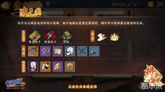 选择了波之国,波之国是位于火之国东南沿岸的小岛国,由于位置靠近雾隐村,偶尔可以找到雾忍使用的忍具。