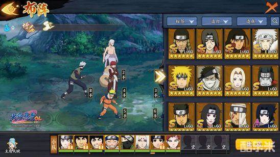 点击第一关后,画面会切换到了阵容搭配。本吉精心挑选好上阵的忍者,分配好每个人的站位,准备开战!