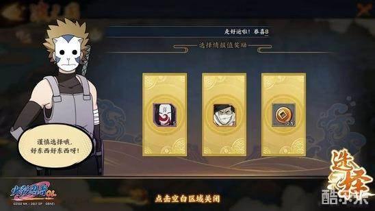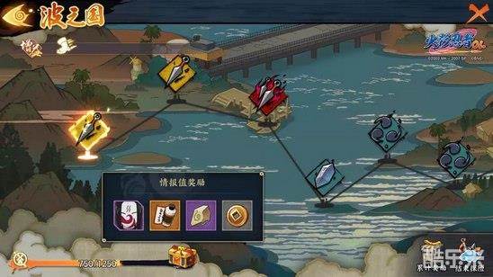 情报奖励也是多种多样:白碎片、忍具召唤符、忍具锻造符、铜币。