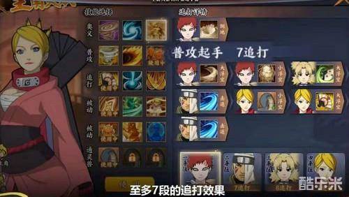 这套阵容不但可以出发击退和浮空的追打,而且完美符合本阵容忍者的奥义或是普攻,不论谁先手谁后手,都可以追加至少6至7段的追打效果,且每段追打当中必然会加入我爱罗的砂缚柩追打造成定身效果。