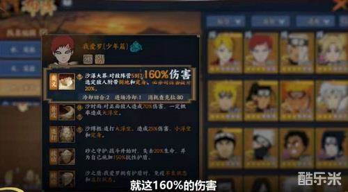 阵容里面的手鞠和我爱罗,可都是风属性忍者大法师。手鞠的奥义可以攻击敌方3位目标,而三星扇之舞的被动可以让手鞠的奥义cd变为2,且可以提升奥义伤害最多达到40%。我爱罗更不必多费口舌了,群体攻击不多说,就这160%的伤害就足够恐怖了。