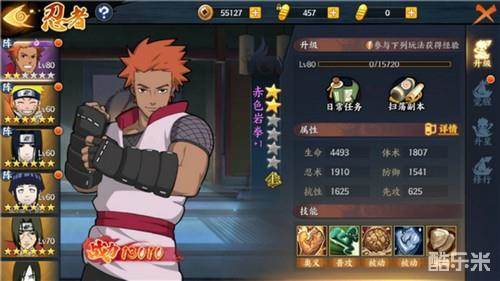 1.土遁·超岩拳术:第二回合可以用来起手造成追打,配合其他忍者造成伤害。另外,奥义还能给整体小队增加护盾,能提高很大的生存空间,还能配合土主的钢体使用。