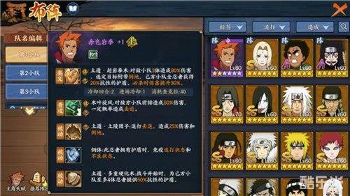 纲手:作为阵容中唯一可以恢复生命的忍者,她起到的作用至关重要,纲手的强大就在于她的奥义,可以让残血忍者恢复大量生命,足以起到起死回生的作用。另外,纲手的被动的也非常强大,虽然触发的效果不可预料,但是被动的每种效果都非常适合这套阵容的体系,不论触发什么效果都有很高的收益。