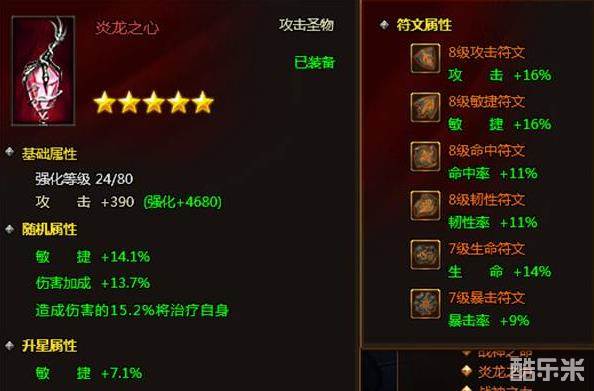所以,炎龙之心是天启专用,最大的好处就是敏多,先手的选择。后期可以给光明用。上次看到一个16.1的敏的,也许那个给光明更好,不带吸血,不能给天启用。