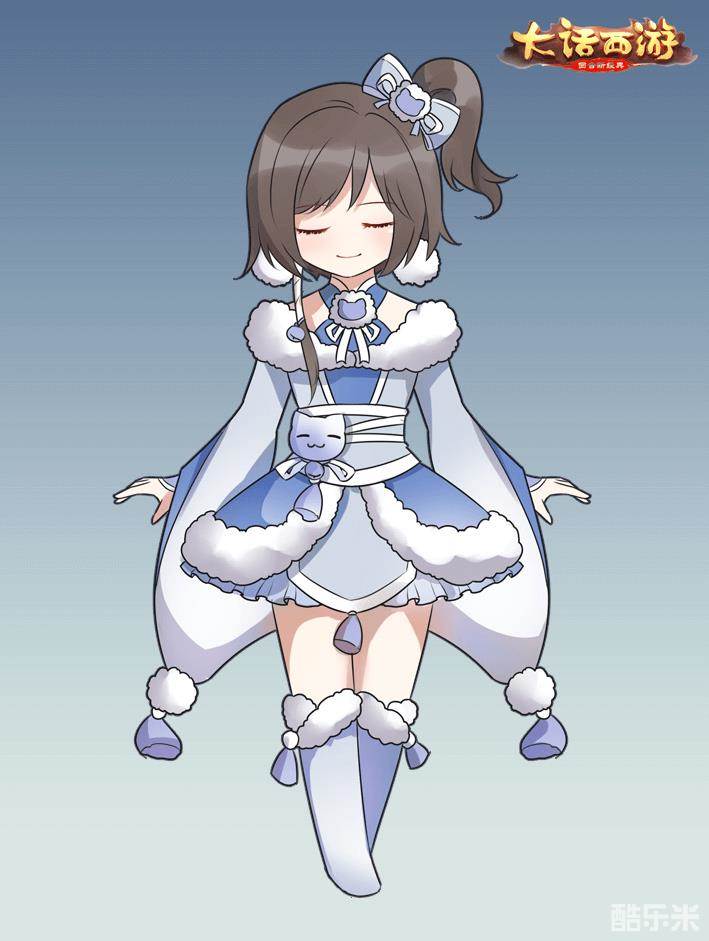凛冬来至,自然也要换上冬装,来自“赤焰冲霄”服务器的司马小悠就为夜溪灵设计了一套专属冬装,蓝白相间的主色调给人以清新的感觉,衣领与裙摆的绒边让衣服看上去十分温暖,此外,作者还贴心的设计了猫型的挂件,更加突出了少女的可爱。