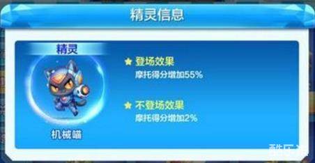 机械喵登场效果是摩托得分增加55%,属性上看加成能力比吸血喵更强一些。喵星来袭的套装属性则是提升云梯效果持续时间。机械喵的技能要求很少,但适用范围也相对缩小,只适配摩托类坐骑。使用摩托类坐骑时搭配机械喵,比搭配绝大数精灵的得分效果好很多!
