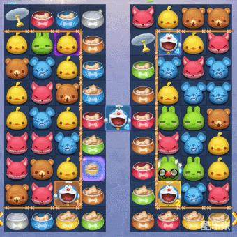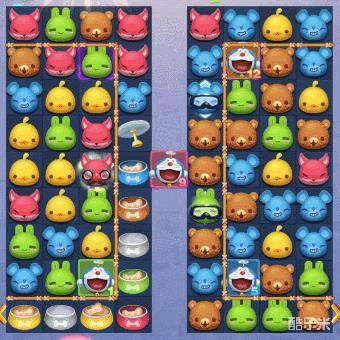 3、哆啦A梦触发需要收集的棋子数量较多,而本关的步数也并不算多。所以我们在闯关期间,还要尽量制造特殊棋子和特效组合使用。利用它们的范围攻击,无论是触发哆啦A梦,还是消除狗粮盆,都会显得更加轻松,让我们更快的通过关卡。