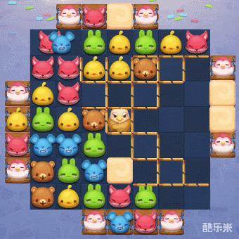 3、小鸡的周围均有奶油障碍物,它们会在接触到棋子后,每步向周围扩散,且不受可消栅栏阻碍。所以在闯关的过程中,有机会一定要优先将奶油消除,保持住我们的匹配消除空间,才能更有效率的消除可消栅栏和制造特殊棋子。