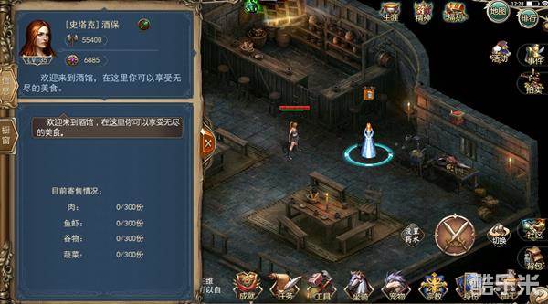 说到饱食度的购买道具,这边就需要给大家介绍一下酒馆的作用了,游戏中玩家可以通过地图上的指示找到酒馆,通过进入入口,玩家可以传送到酒馆场景,在酒馆中玩家可以购买补充能量了。