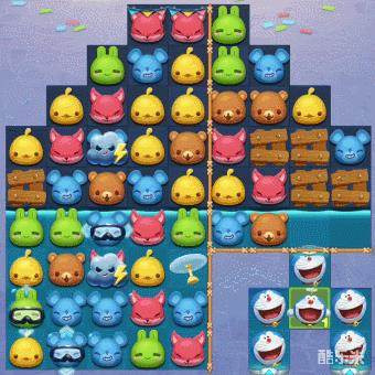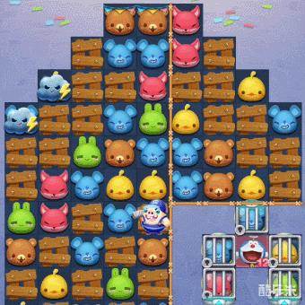 2、棋盘中的障碍物较多,其中的木匠猪还会每步移动生成新的木板,极为影响竹蜻蜓的收集。所以我们在触发哆啦A梦攻击的同时,还要注意障碍物的消除,尽量快速的消除棋盘中的障碍物,为抬升水位后快速收集竹蜻蜓打下基础。